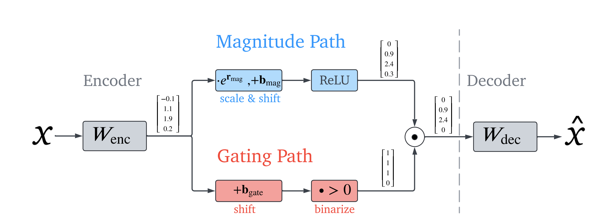 figure 3: Gated SAE with weight sharing between gating and magnitude paths